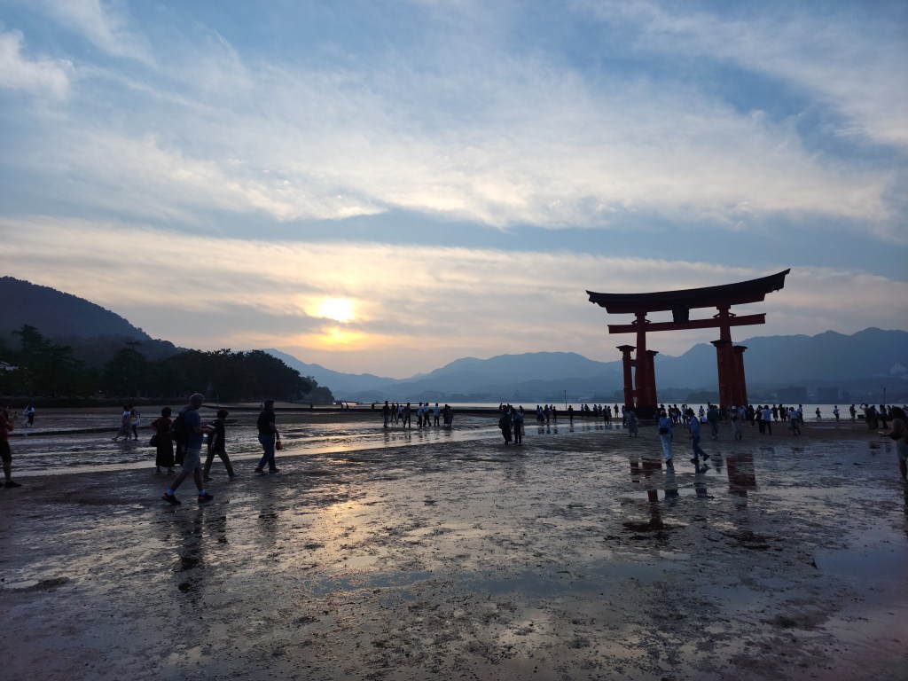 לקחנו אוטובוס לתחנת הרכבת Yokogawa משם רכבת לתחנת הרכבת Mihajimaguchi. הליכה של כמה דקות הובילה אותנו למעבורת לאי מיאג'ימה. דבר ראשון הלכנו לראות את שער הטוריאי הידוע של האי, אחרי זה למקדש המפורסם על המים. משם צעדנו לתחנת הרכבל שמוביל להר Misen. מהתחנה העליונה של הרכבל יש הליכה של כ 25 דקות (10 דקות של ירידה ועל 15 דקות עליה ברמת קושי בינונית+) עד לתצפית בראש ההר. קנינו כרטיסים רק בכיוון אחד כי ירדנו את ההר בחזרה ברגל בשביל שיורד למקדש Daishoin. הירידה, ברובה בתוך יער קריר, לקחה מעל שעה ולא הייתה פשוטה כי המדרגות לא היו שוות בגודלן ומאוזנות דבר שמאד העמיס על הברכיים. מזג האויר היה מאד חם ולח באותו היום ומאד הזענו לכן קנינו לי חולצה מנדפת חדשה. כשחזרנו לאיזור שער הטוריאי המפורסם החל השפל דבר שאפשר בסופו של דבר להגיע לשער ברגל. כשירד הערב חזרנו במעבורת והפעם לקחנו את החשמלית מתחנת Hiroden-Miyajimaguchi עד Hondori. אחרי ארוחת הערב קנינו מדבקות נגד עקיצות אחרי הבילוי הארוך שלנו בטבע. זה היה יום קשה אך מושלם.