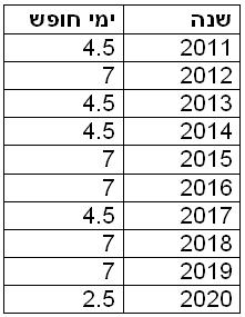 כפי שניתן לראות באותו חודש תשרי זכו רוב העובדים ביומיים וחצי חופש כשפוטנציאל החופש הוא שבע כפי שקרה לפני שנתיים: