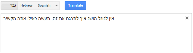פעם בחודש אני צריך לתרגם אוסף פסקאות באורך כולל של 850 מילים מאנגלית לעברית. עד ה 25 לספטמבר 2008 זאת הייתה משימה ממש קשה, אבל בתאריך הזה השיקה גוגל את התמיכה בעברית ל Google Translate. כמעט שבע שנים אחרי, רמת התרגום של השירות היא כמו של עולה חדש שנמצא פה שבע שנים, שלמרות שזה לא מושלם זה נותן לי את הבסיס לתרגום מהיר.